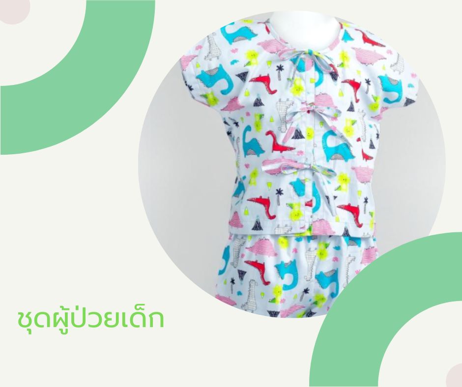 - ชุดผู้ป่วยหนัก, ชุดผู้ป่วยคอกลมผูกหน้า, ชุดผู้ป่วยผูกไหล่ผูกข้าง